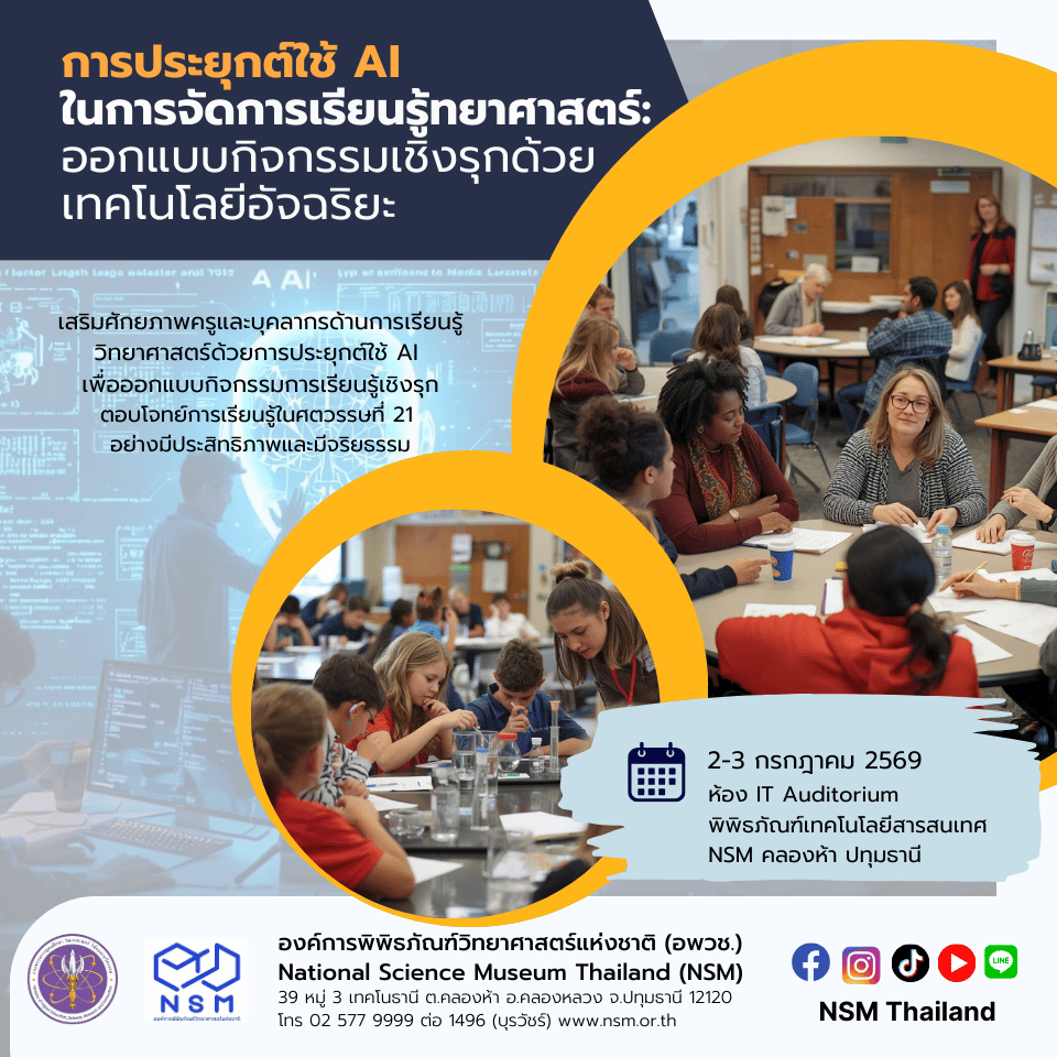 "เสริมศักยภาพครูและบุคลากรด้านการเรียนรู้วิทยาศาสตร์ ด้วยการประยุกต์ใช้ AI เพื่อออกแบบกิจกรรมการเรียนรู้เชิงรุก ตอบโจทย์การเรียนรู้ในศตวรรษที่ 21 อย่างมีประสิทธิภาพและมีจริยธรรม"